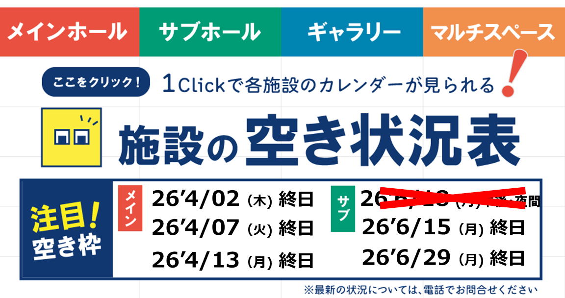 芸術文化ホールは皆さまに芸術・文化のある暮らしをお届けします。