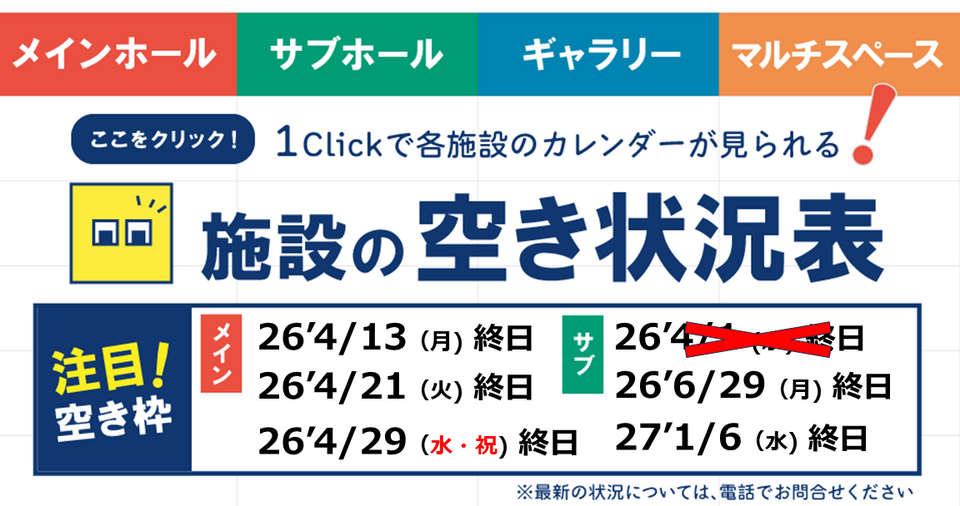 また発表会や展示会などの施設利用も可能です。スタッフがサポートしますので、お気軽にご相談ください。