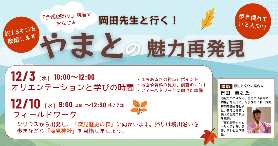 12月10日(水)9時00分出発~12時30分終了予定 - 岡田先生と行く! やまとの魅力再発見